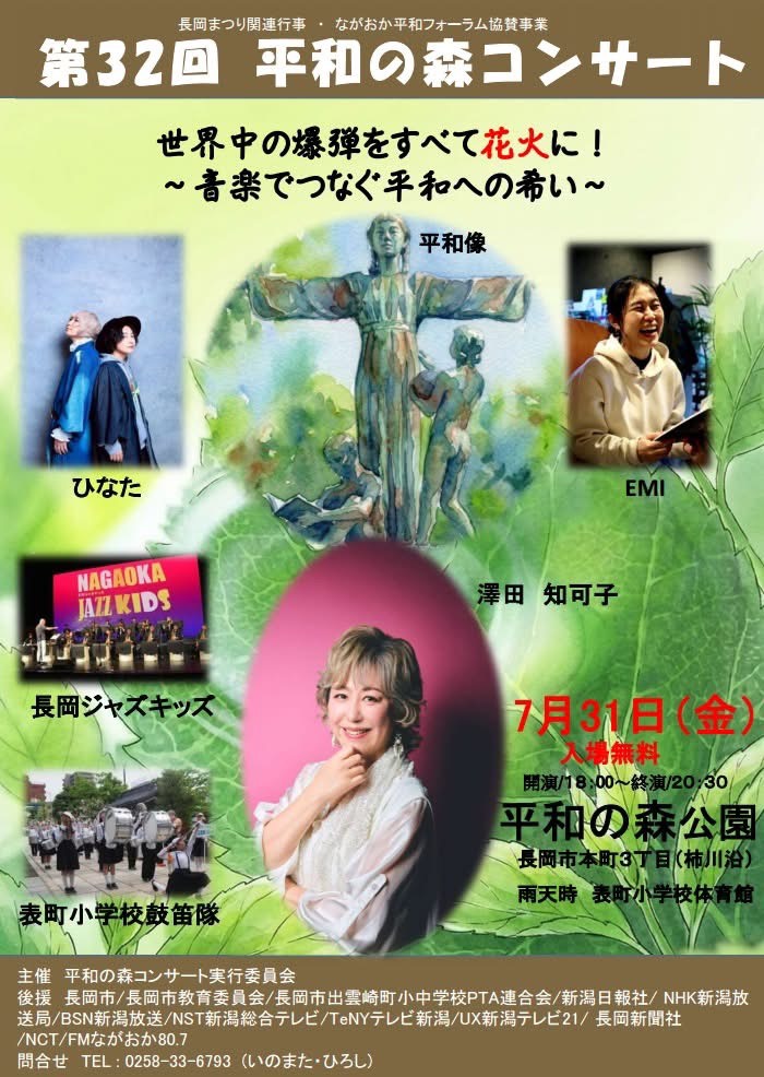 「第32回平和の森コンサート 2026」 ~世界中の爆弾をすべて花火に!~音楽でつなぐ平和への希~ ■日時 2026年7月31日(金) 開場18:00/開演~20:30 終演 ※ひなた18:30~ ■会場 平和の森公園住所新潟県長岡市本町3丁目 [...]