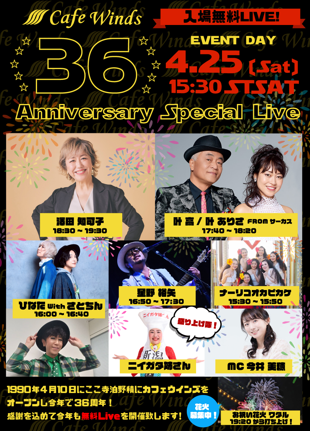 「CafeWinds 35 Anniversary Live」 ■日時 2026年4月25日(土) ■会場 カフェ&バナナウインズ屋外特設ステージ ■出演アーティスト&時間 15:30~ナーリコオカピカケ [...]