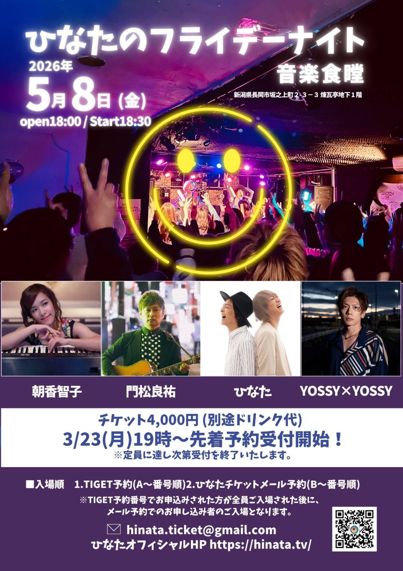 「ひなたのフライデーナイト」 ■日時 2026年5月8日(金) 開場18:00 / 開演18:30 ■会場 音楽食瞠 (新潟県長岡市坂之上町2-3-3 煉瓦亭地下 [...]