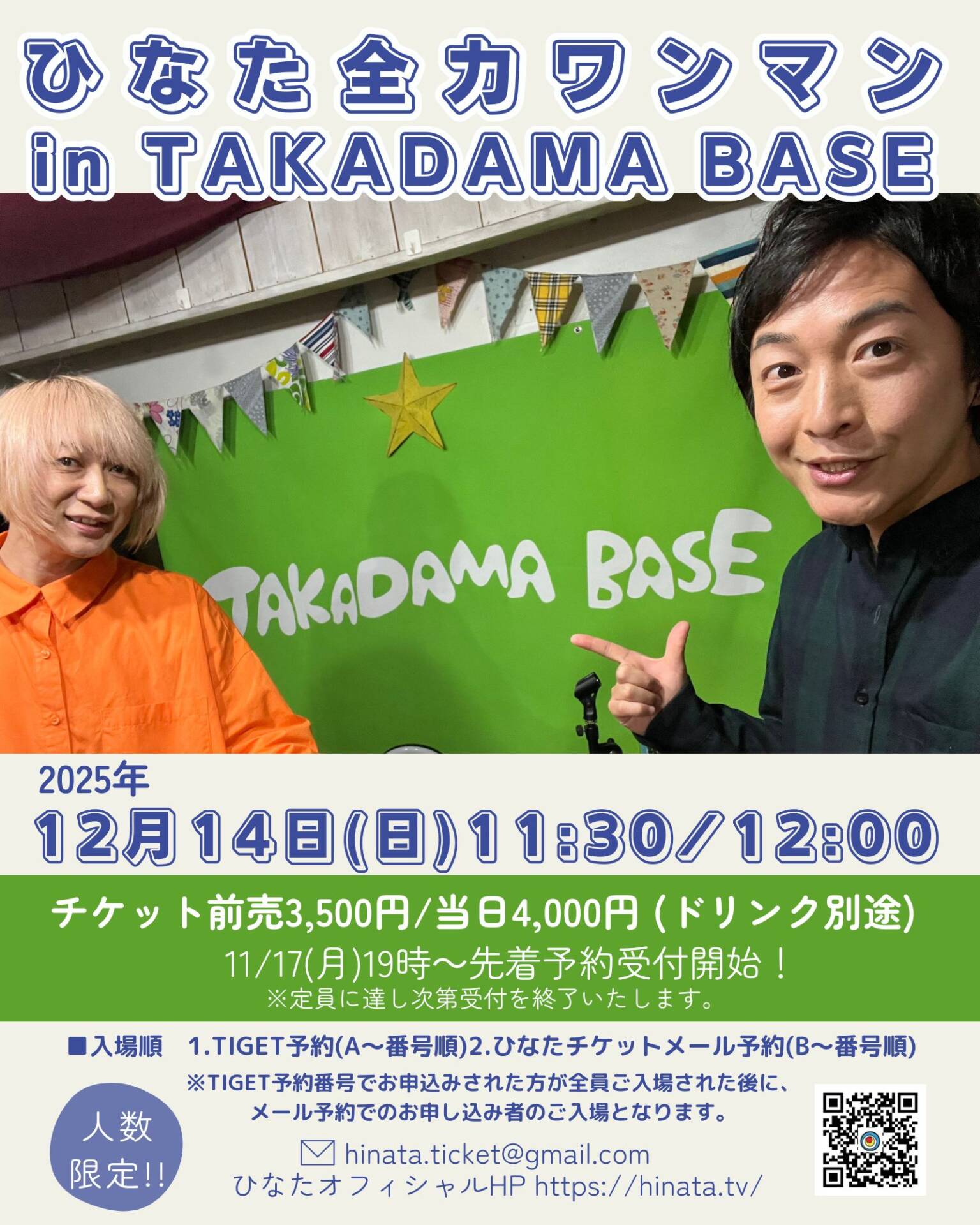 「ひなた全力ワンマンinTAKADAMA BASE」 ■日時 2025年12月14日(日) 開場11:30/開演12:00 ■会場 TAKADAMA BASE (大阪府高槻市芥川町1-10-27 2F) [...]