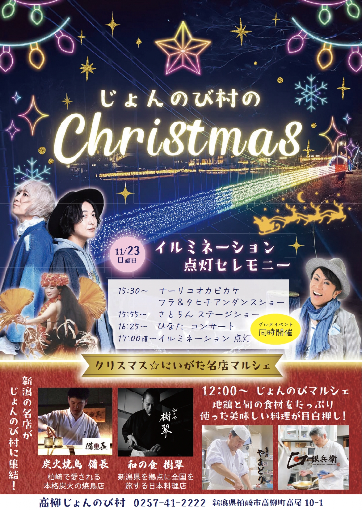 「じょんのび村のChristmas」 ■日時 2025年11月23日(日) ■場所 高柳 じょんのび村 (新潟県柏崎市高柳町高尾10-1) ■スケジュール 15:30~ナーリコオカピカケ フラ&タヒチダンスショー [...]